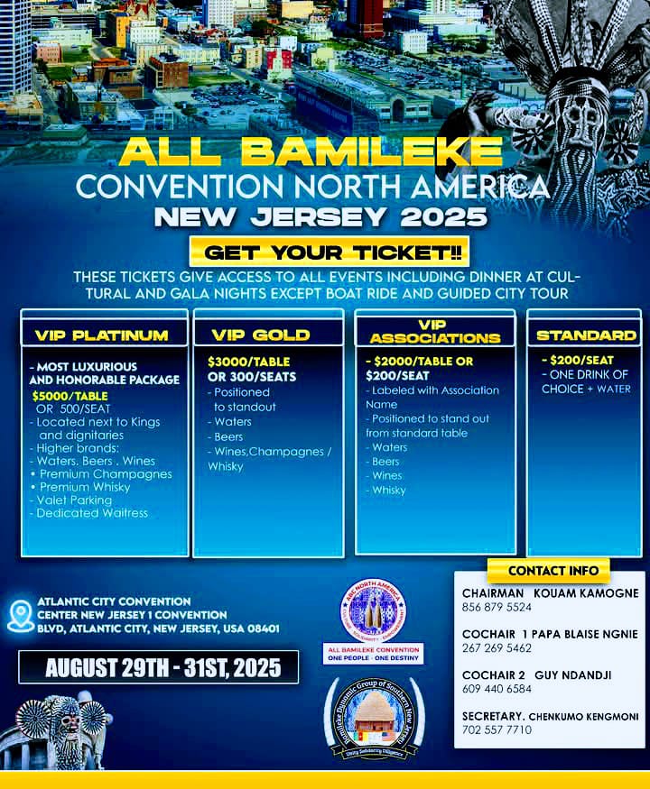 New Jersey, a vibrant destination on the East Coast of the United States with over nine million residents, is the perfect place to experience the excitement of the year’s top events—right between Philadelphia, New York, and Washington, D.C. Join us for the 2025 edition of the All Bamileke Convention (ABC) North America, an event that brings together prominent leaders and dignitaries to celebrate our rich cultural heritage.